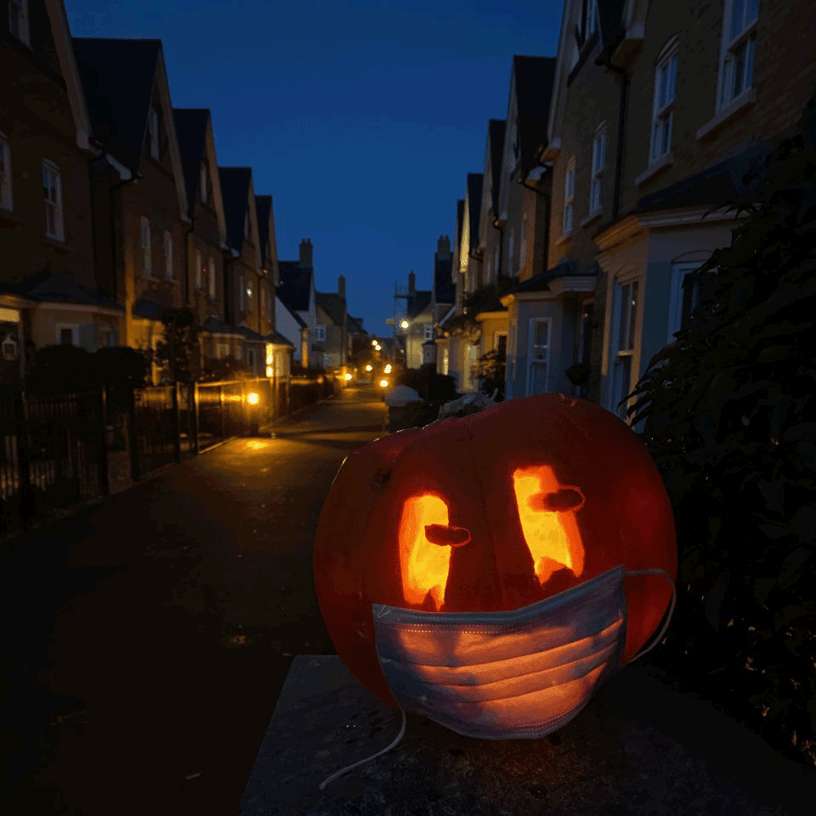The photo of an undecorated and deserted ‘Boonel Walk’ with Covid-masked pumpkin was sent in by Steve Foster.