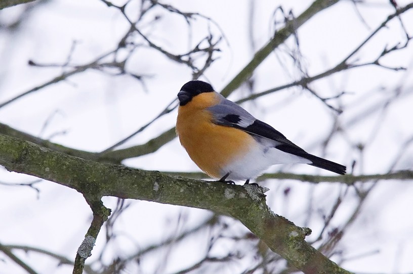 The adult birds feed on tree seeds, weeds and berries and in late winter and early spring they eat the emerging buds of fruit trees and ornamental shrubs. A single bullfinch can strip a plum tree of buds at the rate of 30 buds per minute. This behaviour has led to their persecution in the past and contributed to their decline in the 1960s to the 1990s. Bullfinches will visit garden feeders in the winter, eating seeds and sunflower hearts, but never venture far from their thicket cover. You are lucky if you spot one in your garden. They sometimes form small flocks in the winter and this is often the best time to spot them, near to hedgerows or in mixed woodland.