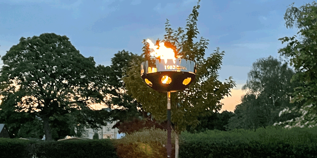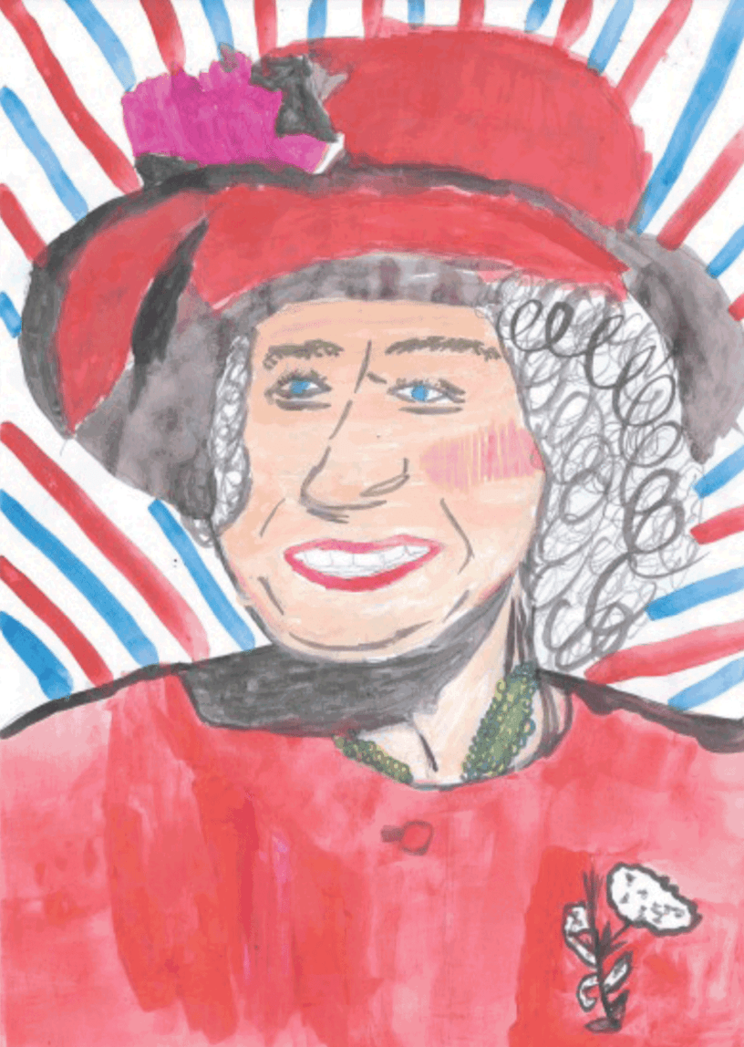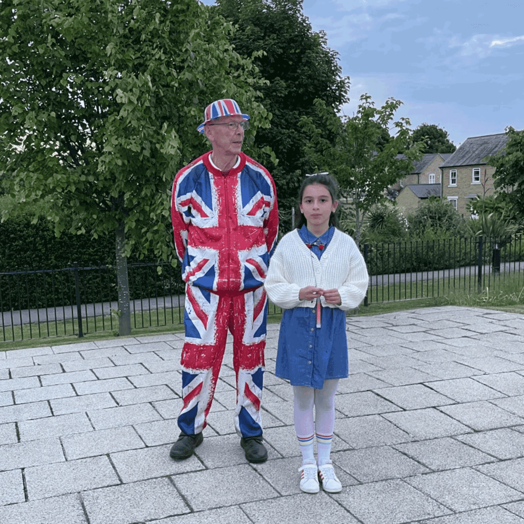 As the light faded the lighting of the beacon was performed by one of Fairfield’s oldest residents, Les Pike (suitably attired!, see picture below), ably assisted by one of our youngest, Arya, who claimed the honour as winner of Fairfield Park Lower School’s competition with her painting of the Queen (headline picture). A second beautiful little girl was awarded the prize for the best-dressed princess. With the beacon alight everyone joined in singing a rousing rendition of God Save Our Queen and finished by offering up three spirited cheers for Her Majesty!