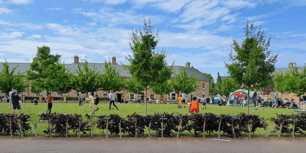 The procession marched through the East and West Orchards, across the cricket pitch and around Fairfield Hall before arriving back at the Urban Park in good time to join in with a couple of joyful (rather than exactly tuneful!) songs – ‘ Sweet Caroline’ and ‘We are the Champions’.