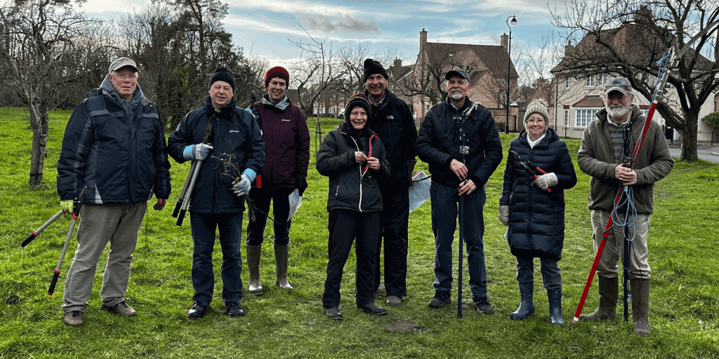 The trees are very old but are bearing up due to the care and attention of volunteers. Thank you to all those who gave their time to help this year’s efforts. This month you may come across a more experienced professional pruning the larger trees in the East Orchard, using ladders and other equipment to do work not suitable for volunteers to undertake.