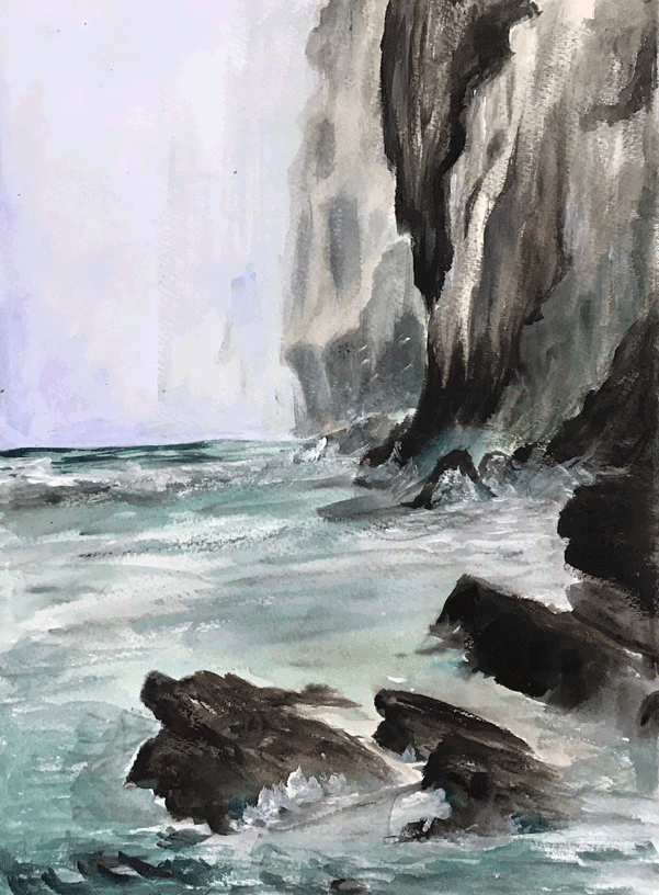 February’s theme has been ‘Water’ and it kicked off with a great paint-along demo by John, who used watercolours to create a beautiful painting. We’ve continued to follow the same subject at each session.