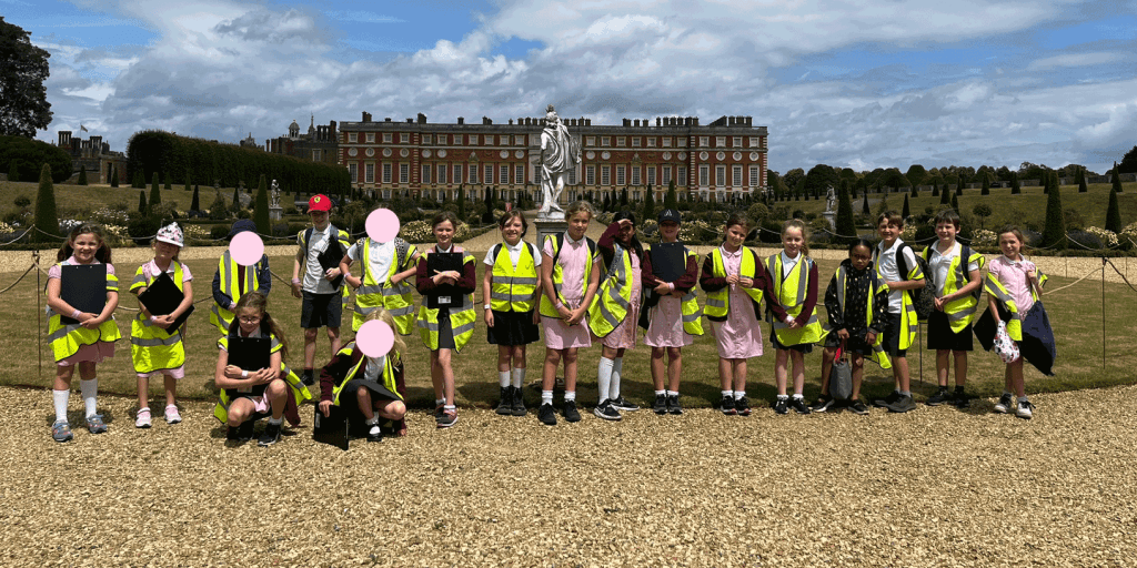 SF: We went on Monday, just with the Key Stage 2 children – so that’s Year 3 and Year 4. We took 18 children with us, out of about 30 children who were involved altogether. The trip was brilliant. We had coach karaoke on the way – I’ve learned a lot of new songs – and bus bingo, and when we got there we got to see Hampton Court Palace – we all went with our high vis on…