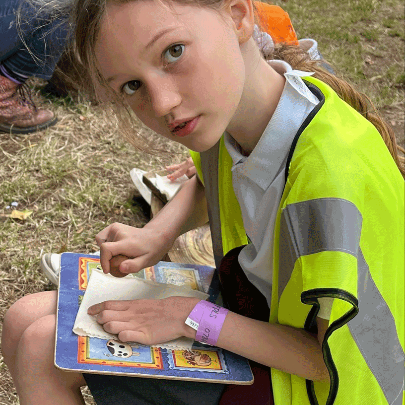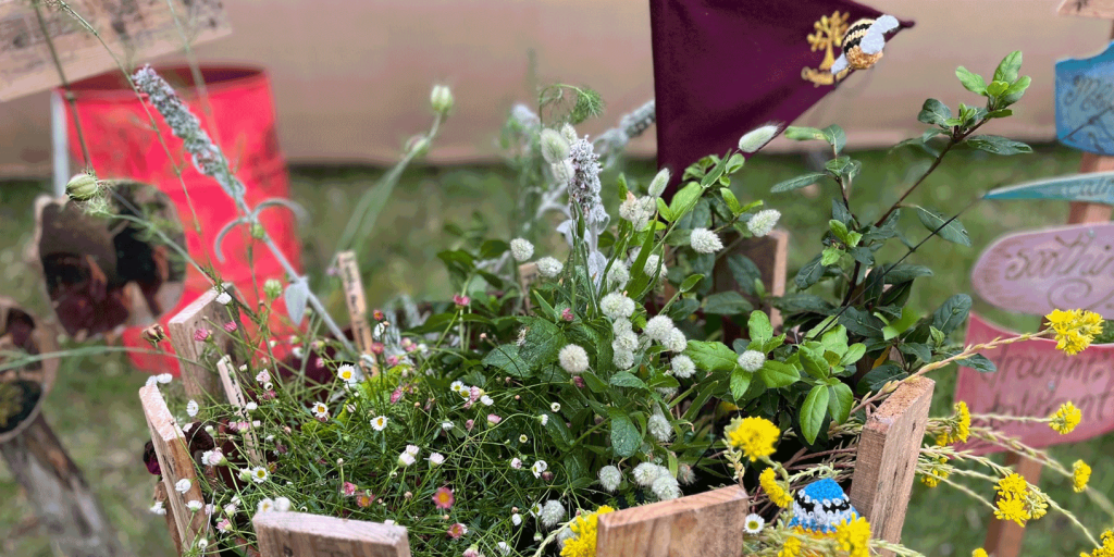 SF: We got to go to the forest school – we sat in a tipi and made dens and did some Hapa Zome, which is a kind of Japanese flower printing where you have to fold some flowers into a piece of fabric and then pound it with a wooden ball to transfer the dyes into the fabric. It was beautiful! So that’s something we might try doing at school. And then we got to look around the show gardens and the allotments. We got lots of inspiration from those. There was a pallet that had been planted up with a watering can at the top and a cycle of water going round, and the man there taught us about how you set it up, so the children are really keen to do that in our garden, and have a self-watering system.