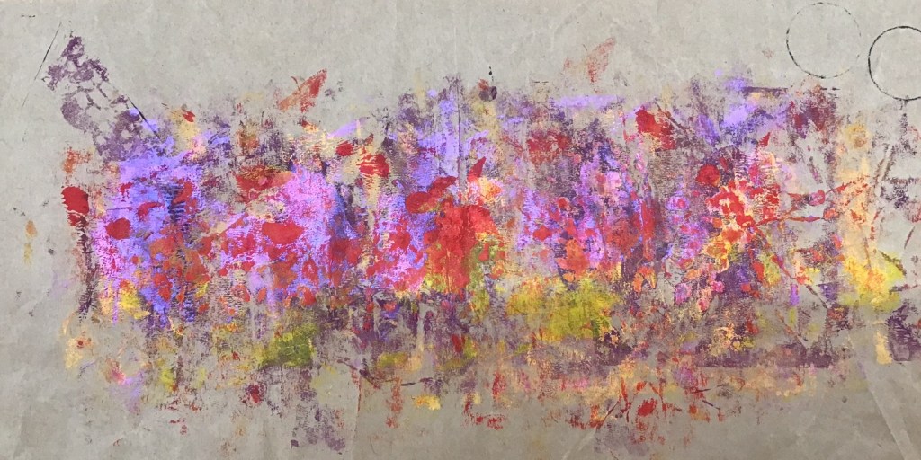 This was a practice session for a workshop Val’s running in August at The Settlement in Letchworth. Most of the art group members had a go. The results were colourful with mixed feelings about whether they’d try it again!